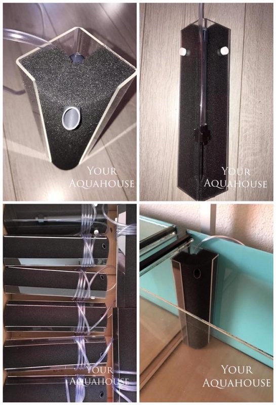 Voor het filtermateriaal is een zwarte mat gebruikt van een PPI( poriën per inch) van 45. Dit is baby- vis en garnaal veilig.