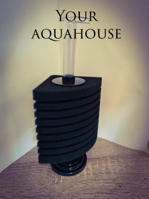 Biologische filtering met hoeksponsfilter, welke zeer goed in de hoeken van het aquarium gebruikt kan worden.