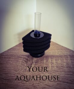 Biologische filtering met hoeksponsfilter, welke zeer goed in de hoeken van het aquarium gebruikt kan worden.