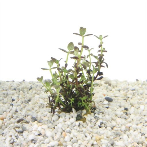 Bacopa salzmannii ‘Purple’ is een opvallende stengelplant die in het aquarium direct de aandacht trekt. Bij de juiste verlichting en voedingscondities ontwikkelt deze plant prachtige paarse tot roodachtige tinten, wat zorgt voor een kleurrijk contrast tussen het groen in je aquascape.