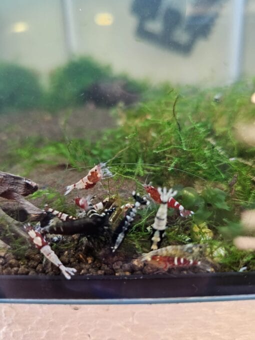Onze Caridina pinto mix worden gekweekt en gehouden op Glasgarten environment soil ( ph verlagende bodem) en het osmose water zouten wij aan met Salty Shrimp gh+. . Ze zitten op een temperatuur van 20-22 graden en met een waterwaarde van: