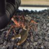 De cherax snowden orange heeft op de rand van zijn klauwen een orange lijn.,
