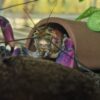 Een paar van de prachtige Cherax sp. purple snakeskin triocolor passen goed in een afwisselend ingericht en netjes gestructureerd aquarium met een randlengte van 80 cm of meer. DeCherax sp. purple snakeskin triocolor gaat niet naar planten, maar als hij niet genoeg schuilplaatsen vindt, kan hij grotten gaan graven en planten opgraven. Een goede opstelling met wortels, stenen en legholen is daarom een aanrader.