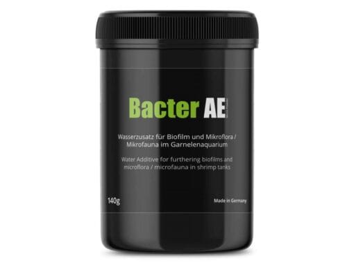 GlasGarten Bacter AE micro poeder voegt belangrijke micro-organismen, aminozuren en enzymen toe aan het aquarium. Bacter AE verbetert de waterkwaliteit en verhoogt de ontwikkeling van het biofilm die vooral baby garnalen nodig hebben. De resulterende biofilm zorgt voor een constant beschikbare, eiwitrijke voedselvoorziening, wat met name het overlevingspercentage van jonge garnalen doet verhogen. Bovendien verbetert bacter AE de opname van voedingsstoffen door dieren en reguleren ze de spijsvertering.