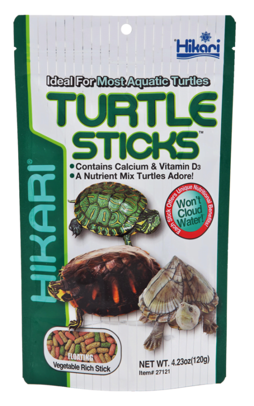 Hikari turtle sticks drie duidelijk gekleurde sticks, elk met verschillende onmisbare voedingsstoffen die je waterschildpad nodig heeft: