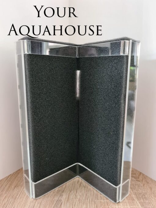 Hier wordt een conventionele filtermat eenvoudig in een plexiglas frame gestoken in de hoop dat er water doorheen stroomt en daardoor ook door de belangrijke bacteriën wordt gekoloniseerd.