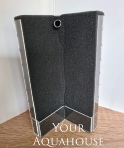 Voor het filtermateriaal is een zwarte mat gebruikt van een PPI( poriën per inch) van 45. Dit is baby- vis en garnaal veilig.