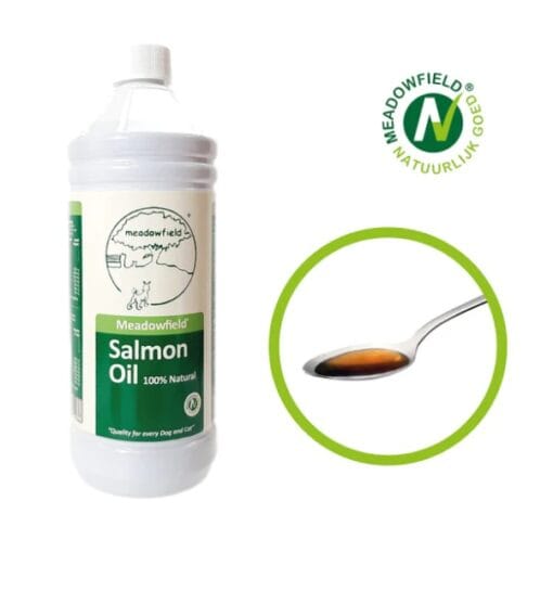 100% Natuurlijke zalmolie – en verder niets toegevoegd – koel en donker bewaren
