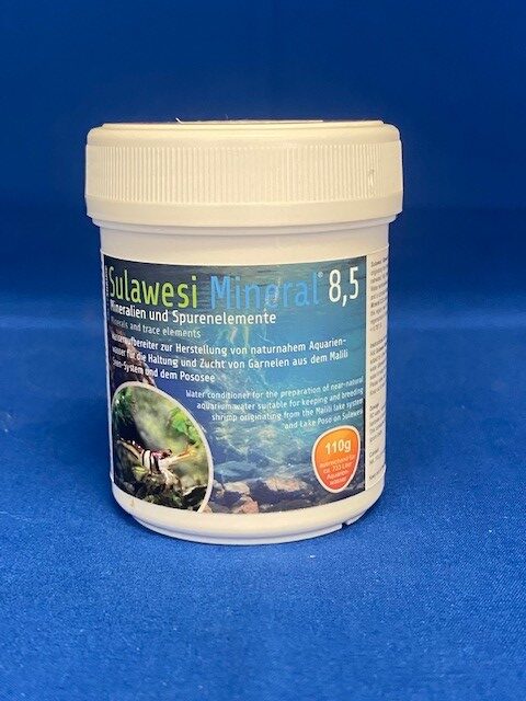 Sulawesi-mineraal 8.5 bevat alle belangrijke mineralen en sporenelementen voor gezondheid, welzijn en de kleurenpracht van de bekende garnalensoorten uit deze regio. Het bevordert de microbiële regeneratie in biofiltersubstraten. Het risico op gevaarlijke ziektekiemen wordt ook verminderd door vooral antagonistische (tegenwerkende) microflora te bevorderen. Verhoogt de carbonaathardheid en de totale hardheid in de verhouding KH / GH = 0,78 / 1,0.