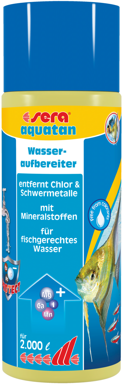 Sera aquatan bereidt leidingwater onmiddellijk op in visvriendelijk, gezond water. Het verwijdert schadelijke stoffen zoals chloor en chloramine, bindt zware metalen (bijv. koper, zink of lood) en beschermt tegen ammoniak. Tegelijkertijd voegt het belangrijke mineralen in biologisch beschikbare vorm aan het water toe, waarvan vissen, planten, ongewervelde dieren en nuttige micro-organismen profiteren: