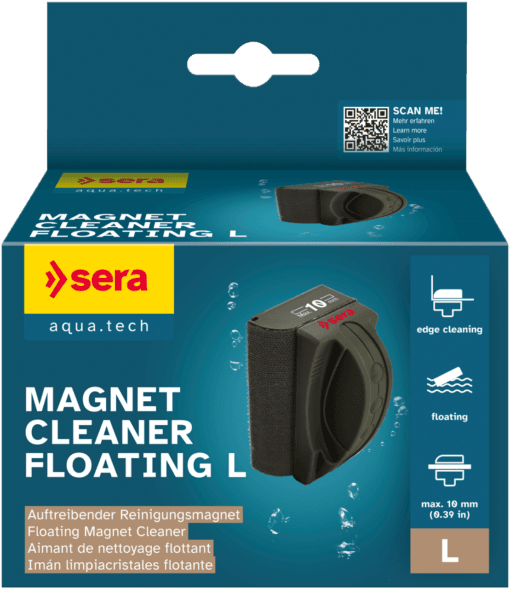 De Magnet Cleaner Floating is een klassieke schoonmaakmagneet, maar kenmerkt zich door zijn drijvende eigenschappen: mocht het binnenste gedeelte tijdens het schoonmaken losraken, dan drijft het vanzelf omhoog en kan het zonder problemen uit het zwembad worden verwijderd. Hierdoor wordt ook het risico geminimaliseerd dat zand of fijn grind in het te reinigen oppervlak van de magneet blijft hangen. De buitenste magneet is bekleed met fijn fluweel en beschermt op betrouwbare wijze de buitenkant van het glazen aquarium.