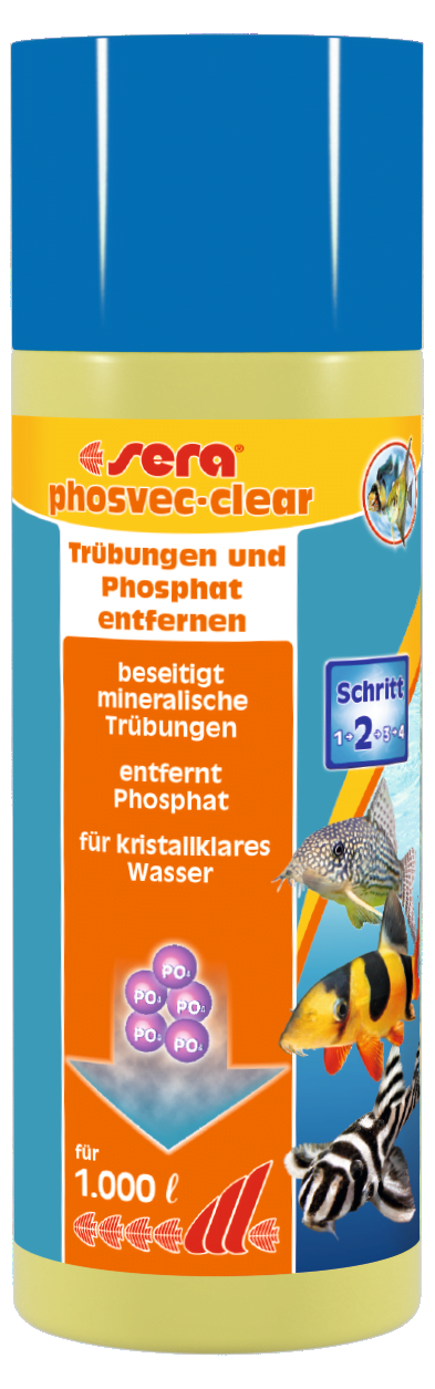 Sera phosvec-clear bindt de troebelheid direct en maakt deze detecteerbaar voor het filter. Tegelijkertijd wordt overtollig fosfaat verwijderd, waardoor overmatige algengroei wordt voorkomen. Voor langdurig kristalhelder en schoon water.