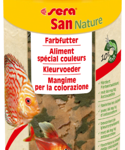 Sera San Nature is het kleurvoeder zonder kleurstoffen en conserveringsmiddelen voor alle aan de oppervlakte etende siervissen. De kleurontwikkeling wordt uitsluitend bevorderd door de natuurlijke ingrediënten zoals astaxanthinerijke Haematococcus-algen en krill.