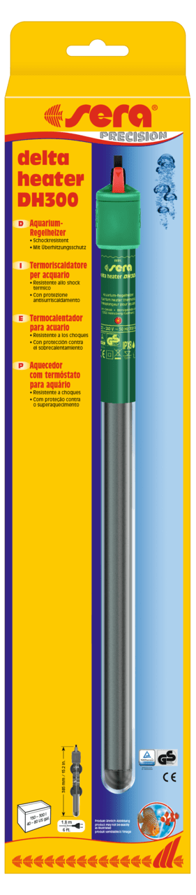 sera aquarium-regelverwarmingen zijn geschikt voor zoet- en zeewater. Ze zijn kort en compact en kunnen derhalve probleemloos in bijna gebruikelijke aquariums recht worden geïnstalleerd. Een temperatuurschaal dient als richtwaarde voor de voorinstelling. Het instelbereik ligt bij het wattage conform de tabel op de verpakking tussen 18 – 32 °C (65 – 89 °F), indien het aquarium is afgedekt. De Sera heater is gemaakt van slagvast glas en voorzien van een kunststof ombouw voor maximale veiligheid.