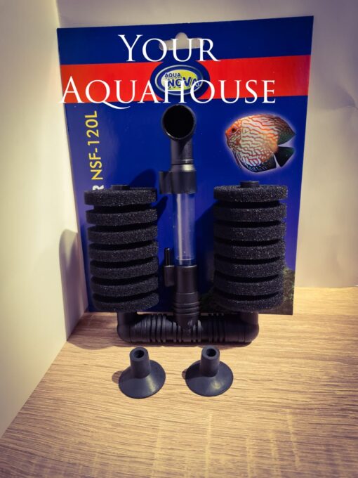 Aqua Nova sponsfilter 120 liter is een ideale veilige luchtfilter voor kleine/jonge dieren en garnalen. Deze filter kunt u gebruiken voor aquariums tot 60 liter. De sponsfilter komt met 2 zuignappen ter bevestiging aan het aquariumglas.